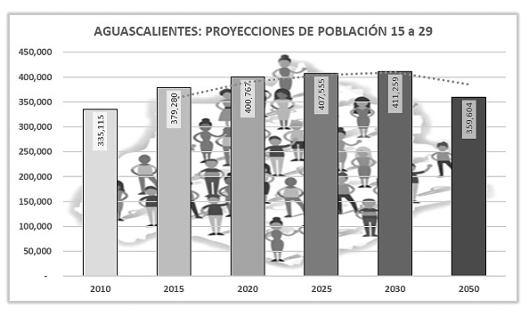 El grupo de 15 a 29 años, considerado como el compuesto por adolescentes y jóvenes, tendrá su máxima participación en el 2030 con más de 411 mil efectivos juveniles; dicha suma prácticamente se irá perdiendo paulatinamente hasta llegar a 50 mil habitantes entre el 2030 y el 2050.