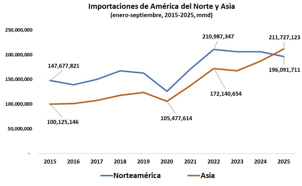 La propuesta, que debe ser aprobada por la cámara alta para poder entrar en vigor, no solo plantea nuevos aranceles, sino también el aumento de hasta un 35% en aranceles durante todo el 2026 a las importaciones procedentes de China y otras naciones asiáticas, una decisión que definitivamente tiene que ver con la próxima revisión del T-MEC.