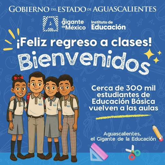 El Gobierno del Estado de Aguascalientes da la bienvenida a las niñas, niños y adolescentes de educación básica que este día retoman actividades escolares, dando inicio a la segunda parte del ciclo escolar 2025–2026. Con este regreso a clases, aproximadamente 300 mil estudiantes vuelven a las aulas en preescolar, primaria y secundaria, reencontrándose con sus maestras, maestros y compañeros.