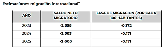 De acuerdo con las proyecciones de población vigentes elaboradas por el CONAPO se estimó para la entidad aguascalentense un saldo neto migratorio negativo de 2 mil 558 habitantes, a una tasa de -0.172 personas por cada 100 habitantes en 2024, y para el año 2025 se calcula que al cierre registrará una disminución de 2 mil 605 habitantes o bien -0.171 personas por cada 100.
