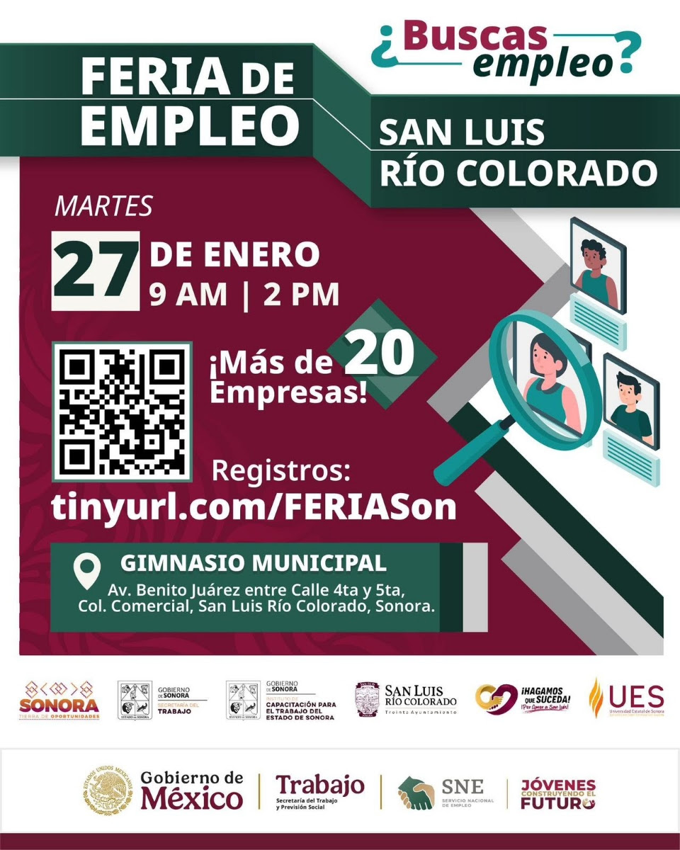 Asimismo, el próximo 27 de enero, San Luis Río Colorado será sede de la segunda feria de empleo del año. En este evento, se pondrán a disposición 400 vacantes diseñadas para impulsar el desarrollo profesional de las y los sanluisinos.