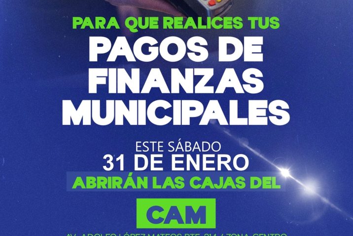 La secretaría de Finanzas del Municipio de Aguascalientes, Miriam Rodríguez Tiscareño, informó que el próximo sábado 31 de enero el Centro de Atención Municipal (CAM) brindará servicio al público para la recepción de pagos del impuesto predial.