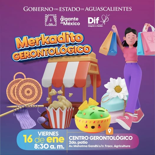 Con el propósito de promover la participación activa de las personas adultas mayores y fortalecer su bienestar integral, el Gobierno del Estado de Aguascalientes, a través del DIF Estatal, llevará a cabo una nueva edición del Merkadito Gerontológico, un evento que busca reconocer el talento, la creatividad y el esfuerzo de las y los abuelitos del estado.
