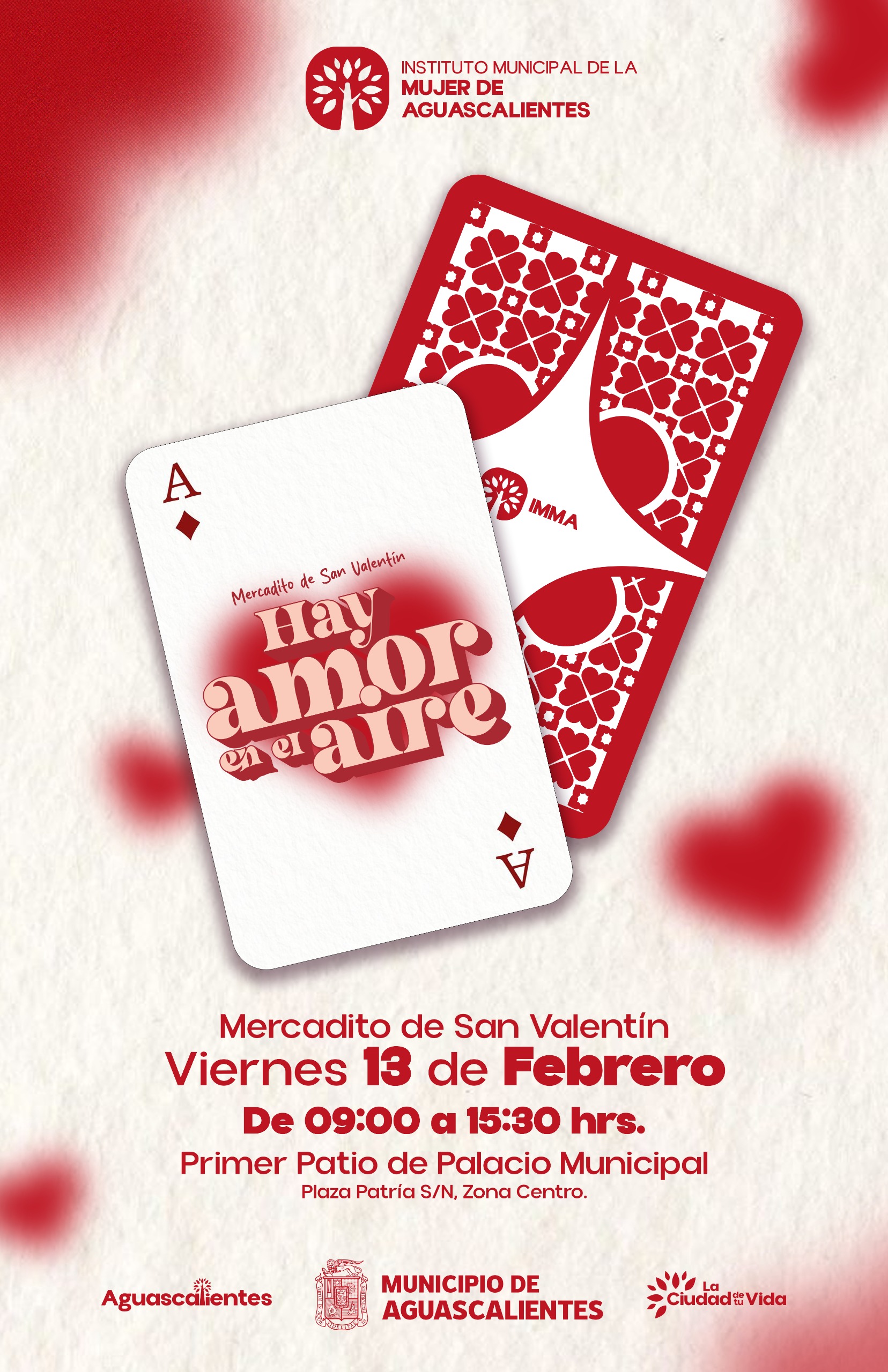 La directora general del IMMA, Karla Paola Ávila Rentería, informó que el Mercadito de San Valentín se llevará a cabo el próximo 13 de febrero en el primer patio del Palacio Municipal, en un horario de 9:00 a 15:00 horas, para ofrecer a la ciudadanía un punto de encuentro y apoyo al talento local y el comercio impulsado por mujeres.