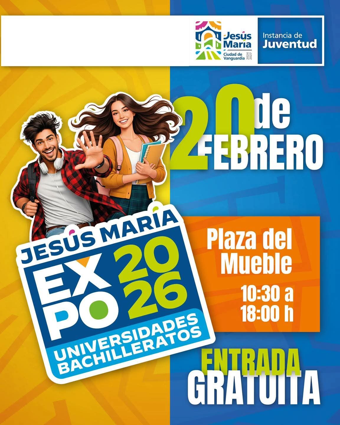 Con el objetivo de acercar a las y los jóvenes del municipio la oferta educativa disponible para que continúen con su formación académica y profesional, el Gobierno Municipal de Jesús María, a través de la Instancia de la Juventud, invita a participar en la Expo Bachilleratos y Universidades 2026.