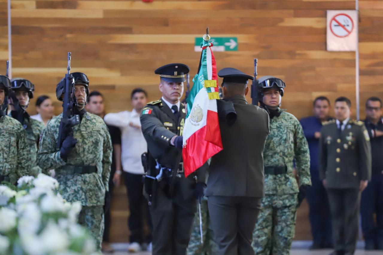 Durante la ceremonia, el comandante de la 14/a. Zona Militar, general Álvaro Javier Juárez Vázquez, destacó la relevancia histórica de la institución y reconoció la visión y el liderazgo de la titular del Ejecutivo estatal para consolidar una coordinación estratégica en favor de la seguridad.