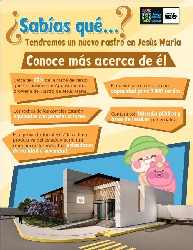 El proyecto tendrá un impacto significativo en el fortalecimiento de la cadena productiva porcina, considerando que cerca del 80 por ciento de la carne de cerdo que se consume en Aguascalientes proviene del rastro de Jesús María, lo que refuerza la importancia estratégica de esta infraestructura para el sector agroalimentario.