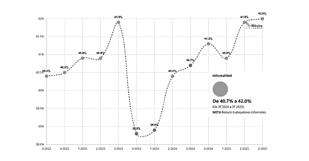 Informalidad Laboral: Para el tercer trimestre de 2025, la informalidad laboral se incrementó del 40.7% al 42% de la población ocupada.