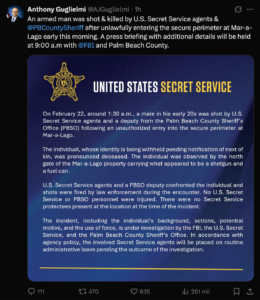 El Servicio Secreto de Estados Unidos informó que sus agentes abatieron a un hombre armado que ingresó ilegalmente a las instalaciones de Mar-a-Lago, residencia del presidente Donald Trump en Florida.