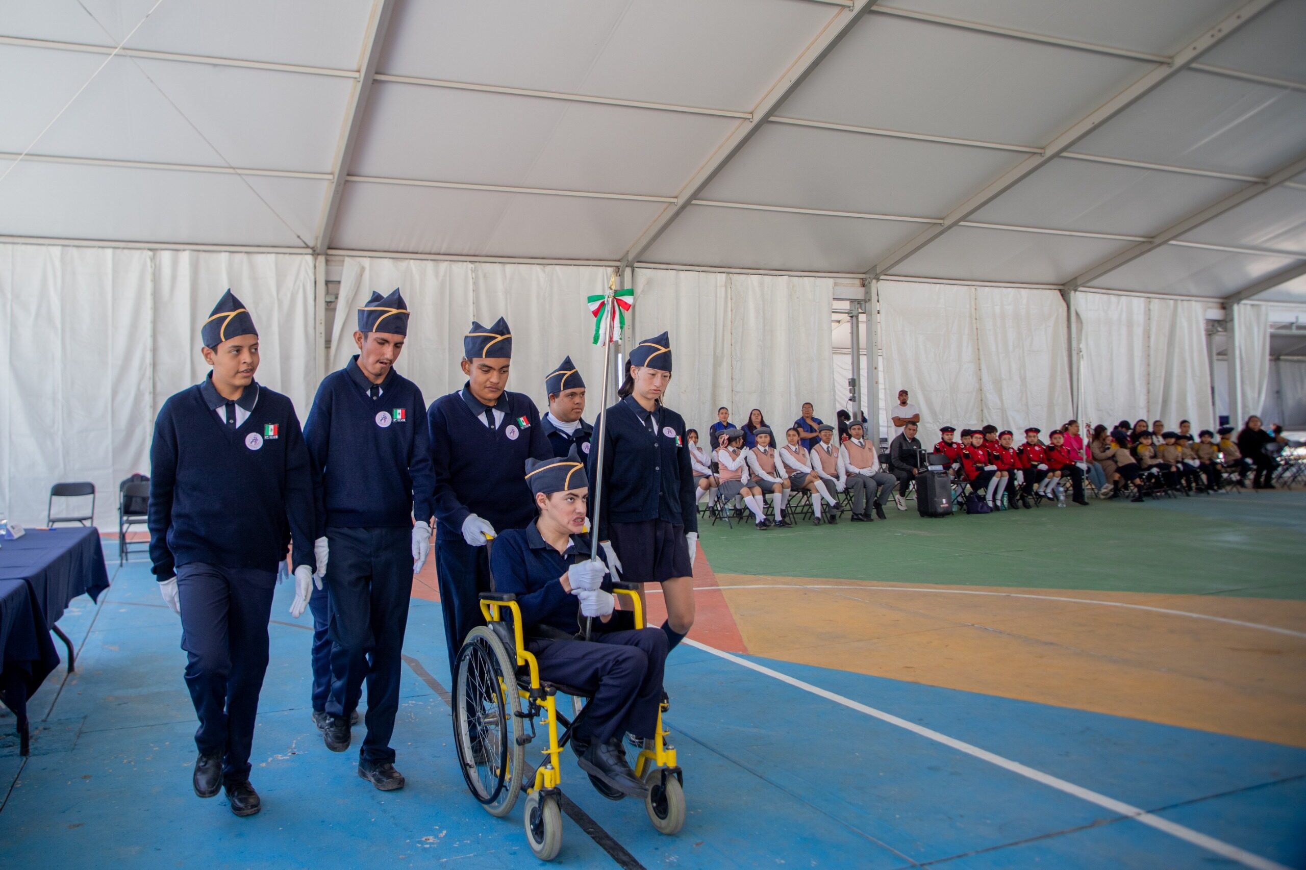 Con el objetivo de fortalecer el orgullo por los símbolos patrios, así como fomentar el respeto, la disciplina y el trabajo en equipo, en el municipio de Jesús María se llevó a cabo una demostración de escoltas de bandera en la Unidad Deportiva Cielo Claro. En el evento participaron 30 escoltas de preescolar, primaria y secundaria, quienes demostraron coordinación, gallardía y compromiso cívico ante la comunidad educativa y las familias asistentes.