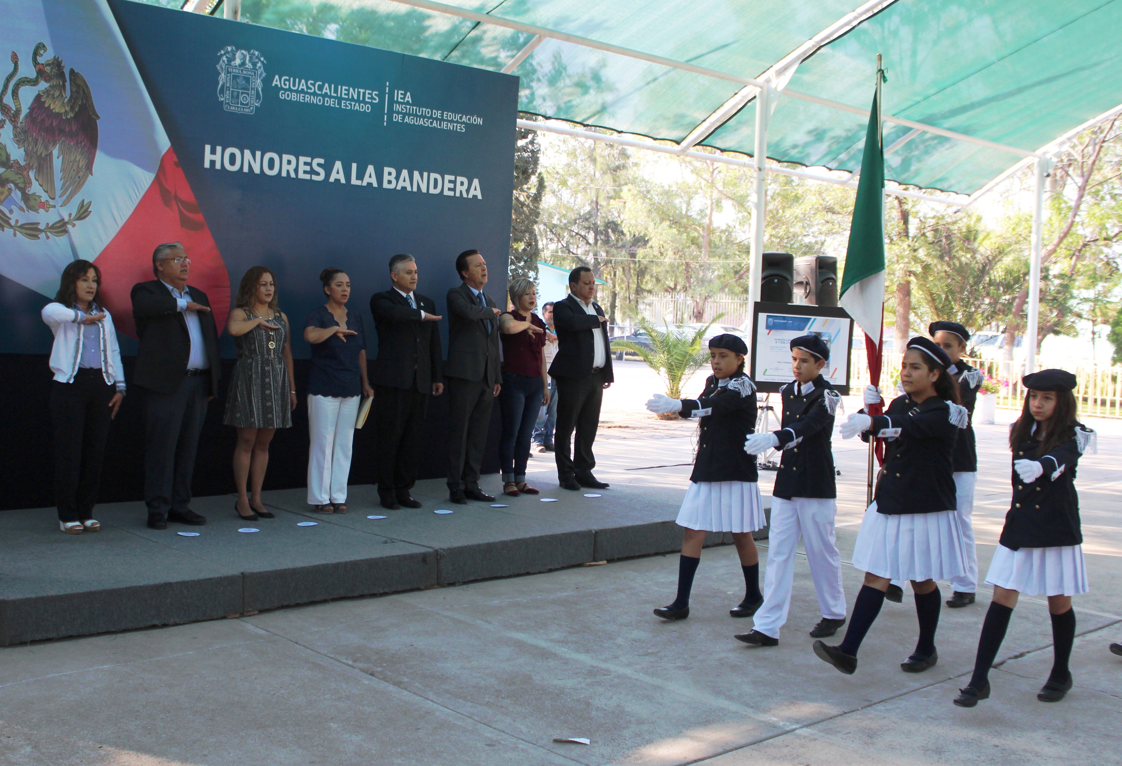 Honores a la Bandera en el Jardín de Niños Eva Sámano de López Mateos, en Aguascalientes