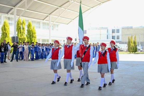 Alcalde de Aguascalientes rinde honores a la bandera en la Secundaria General No. 45