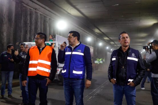Leo Montañez encabeza operativo nocturno de limpieza en paso a desnivel