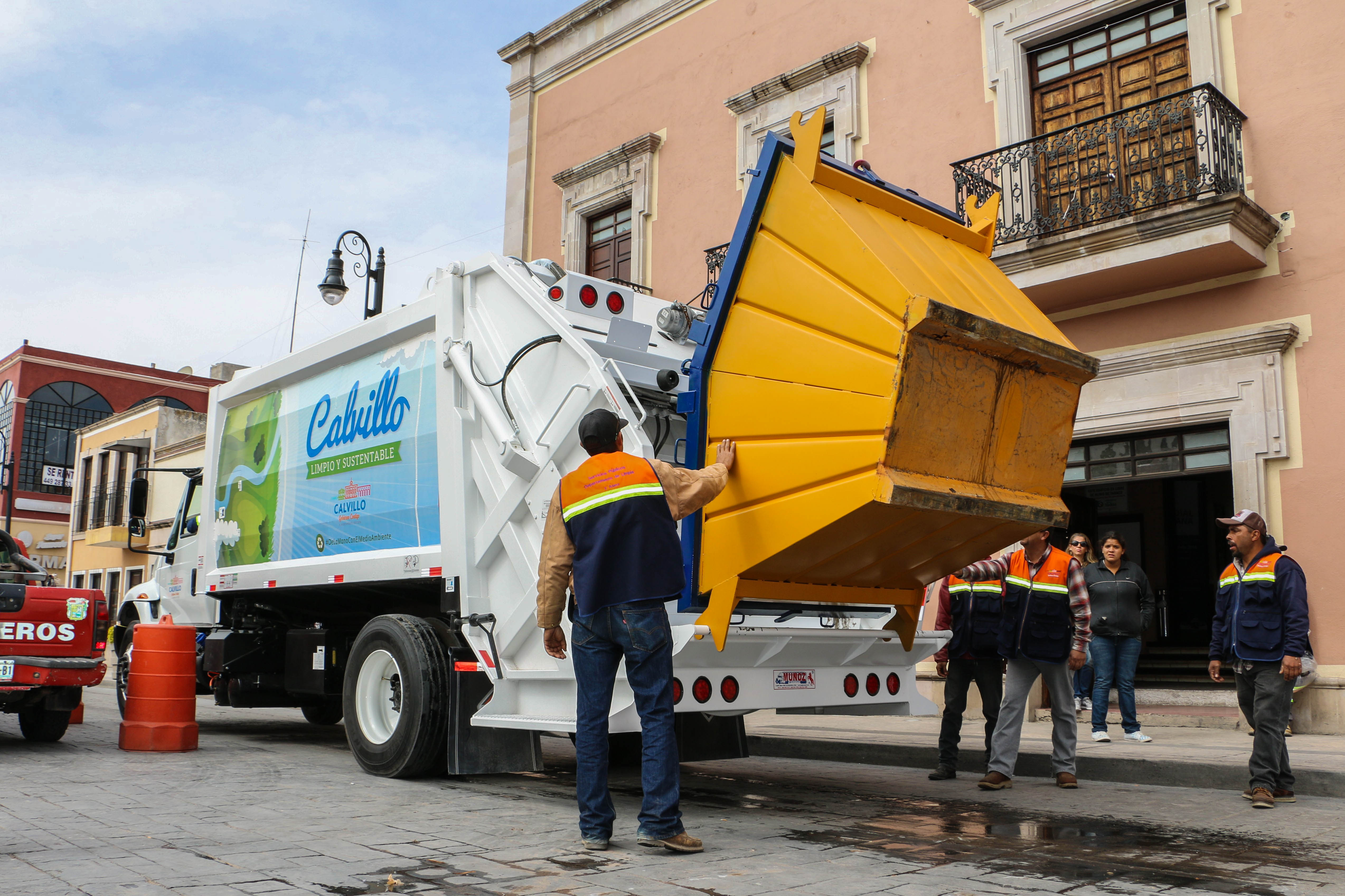 Entregan en Calvillo 2 camiones compactadores, 10 contenedores y 104 uniformes