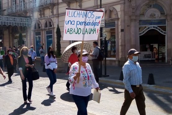 Pensionados del Isssspea en Aguascalientes exigen que sus pensiones sean calculadas en salario mínimo