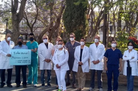 Personal sanitario se manifiesta afuera del Palacio de Gobierno reclamando acceso a la vacuna contra COVID-19