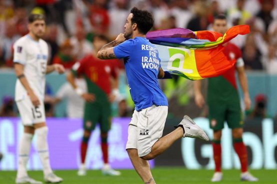 Con bandera LGBT, aficionado invade el Portugal-Uruguay